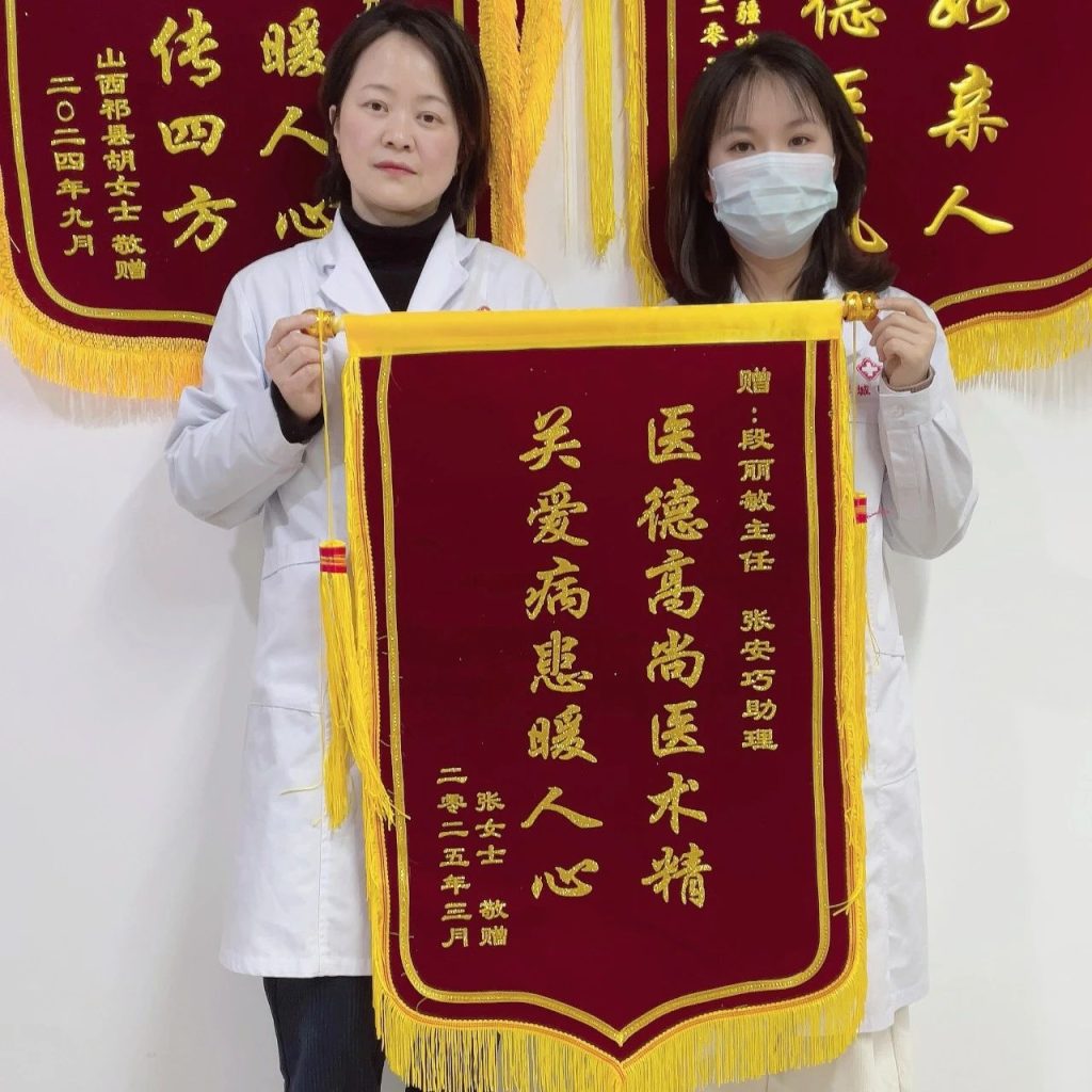 经过规范的治疗,张女士的外阴白斑症状明显改善:外阴发白面积逐渐消退,瘙痒感消失,皮肤恢复正常。复查结果显示,她的病情已得到有效控制,生活质量大幅提升。欣喜之余,张女士特意定制了一面锦旗寄到我院,以表达对医护团队的感激之情。