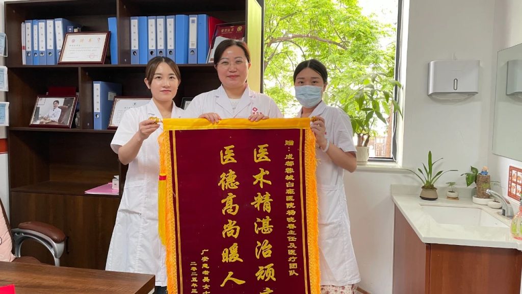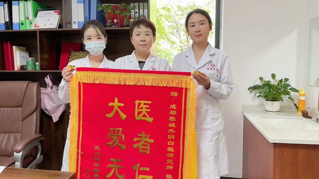 在诊室的墙上,两面新挂的锦旗格外醒目。“医术精湛治顽疾,医德高尚暖人心”“医者仁心,大爱无疆”——这是两位外阴白斑患者吴女士与王女士(化名)送来的致谢,锦旗背后,是我院医疗团队以专业守护健康、用耐心传递希望的真实记录。